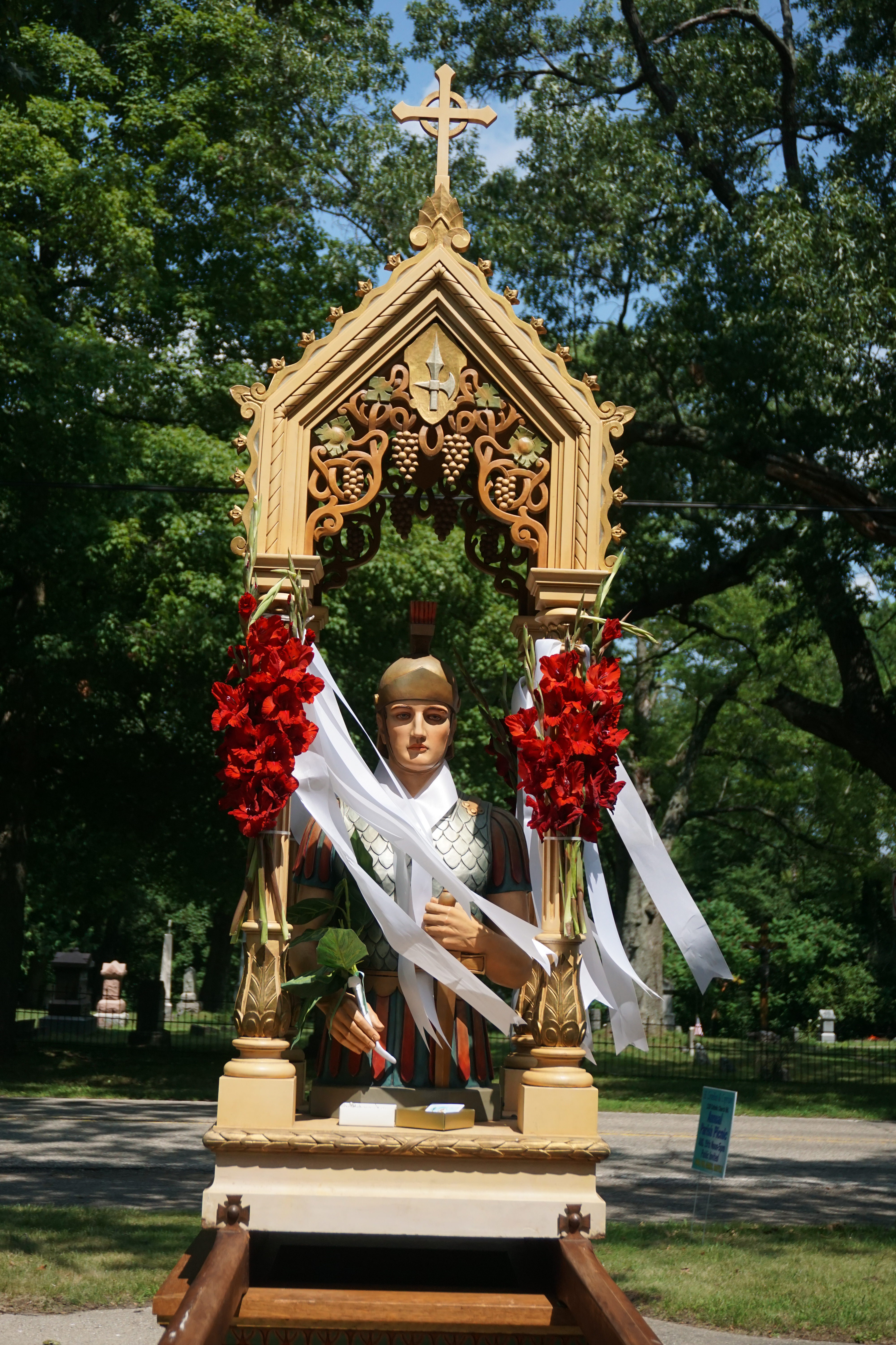 The Sant’ Ippolito statue outside of the church waiting for the Procession to begin.