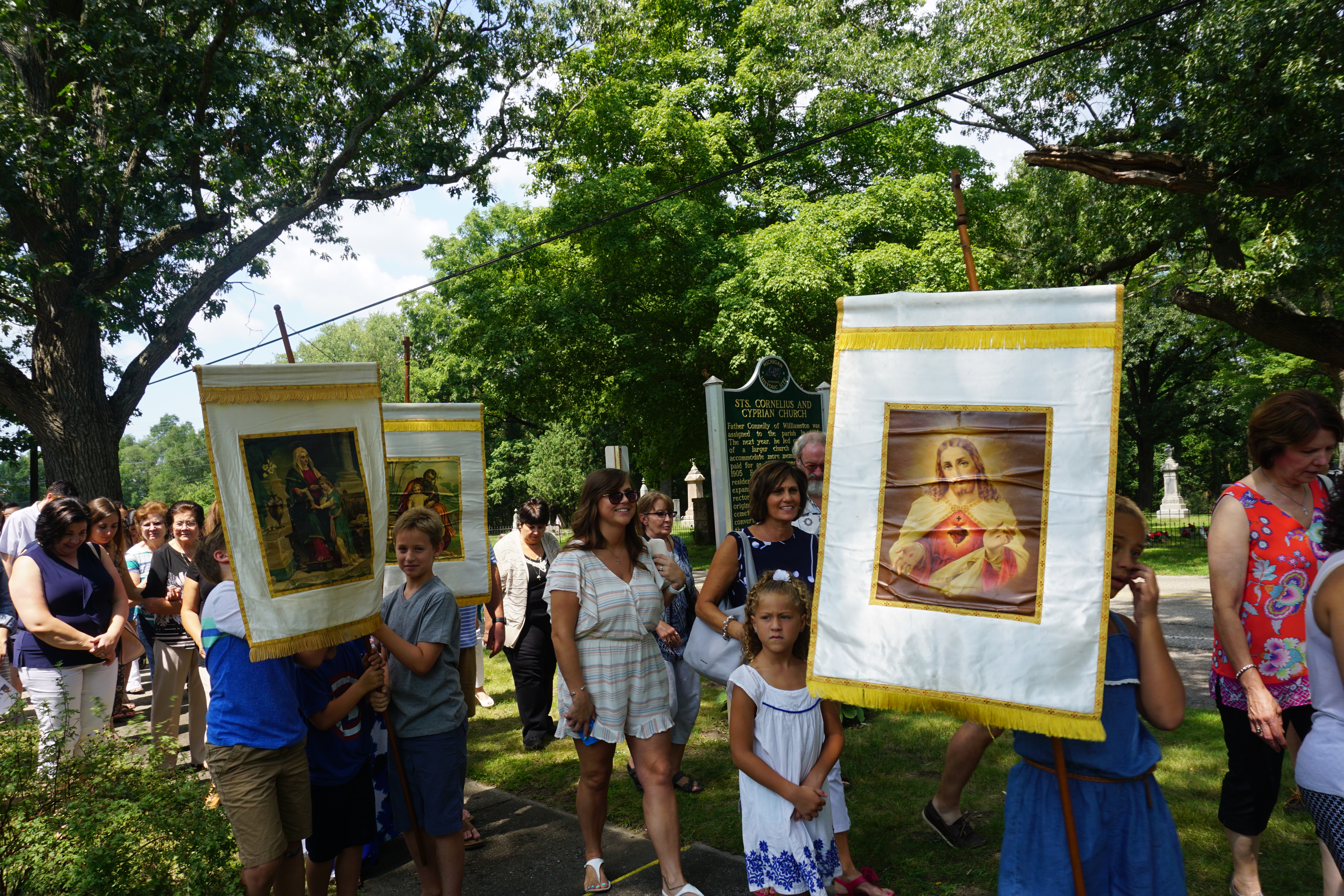 It is tradition for the younger generation to carry the religious banner during the Procession. Each year children are excited to be a part of the tradition!