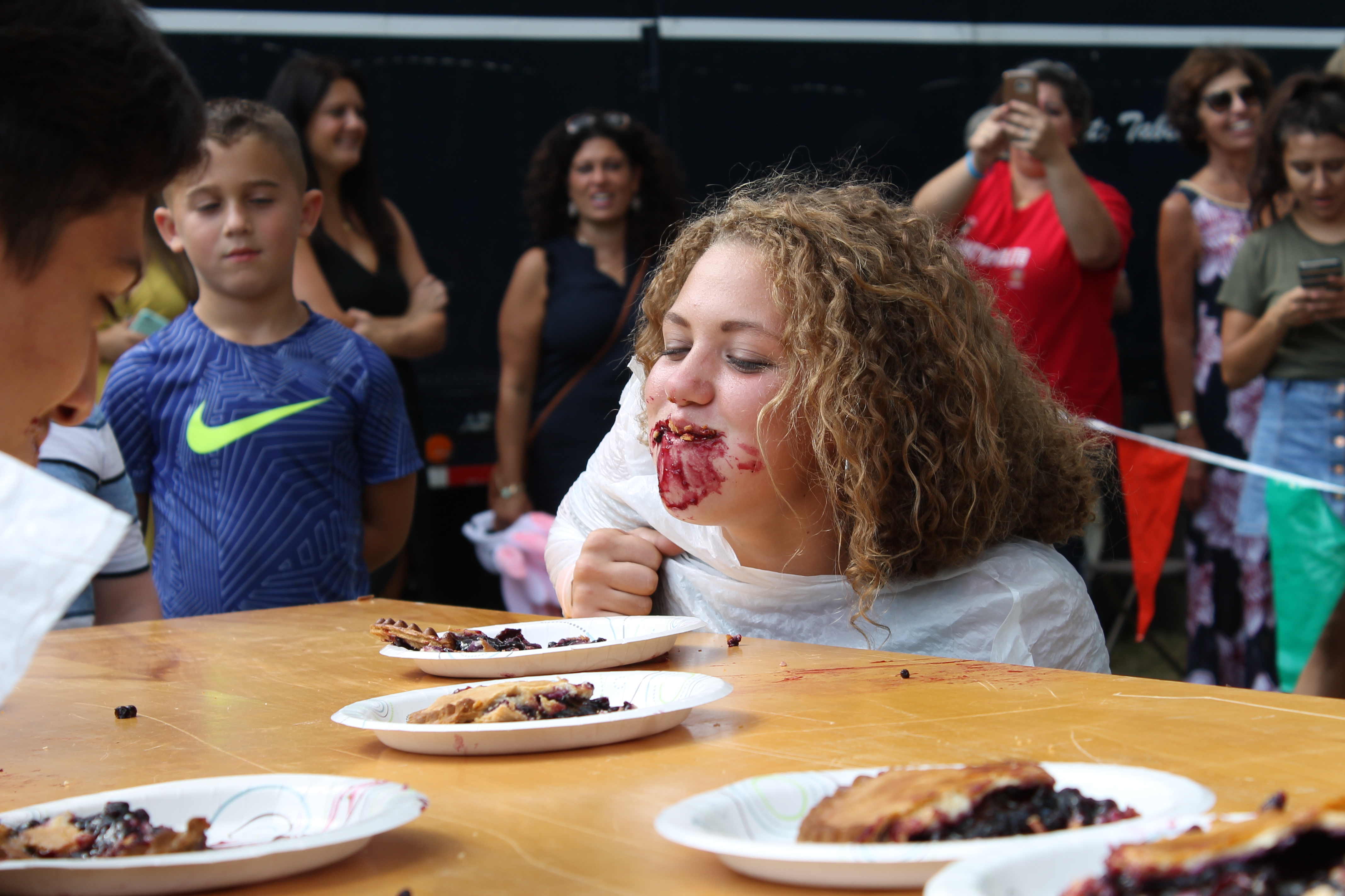 One of the winners of the blueberry pie eating contest! We host the blueberry pie eating contest every 5 years as a nod to past festivals!