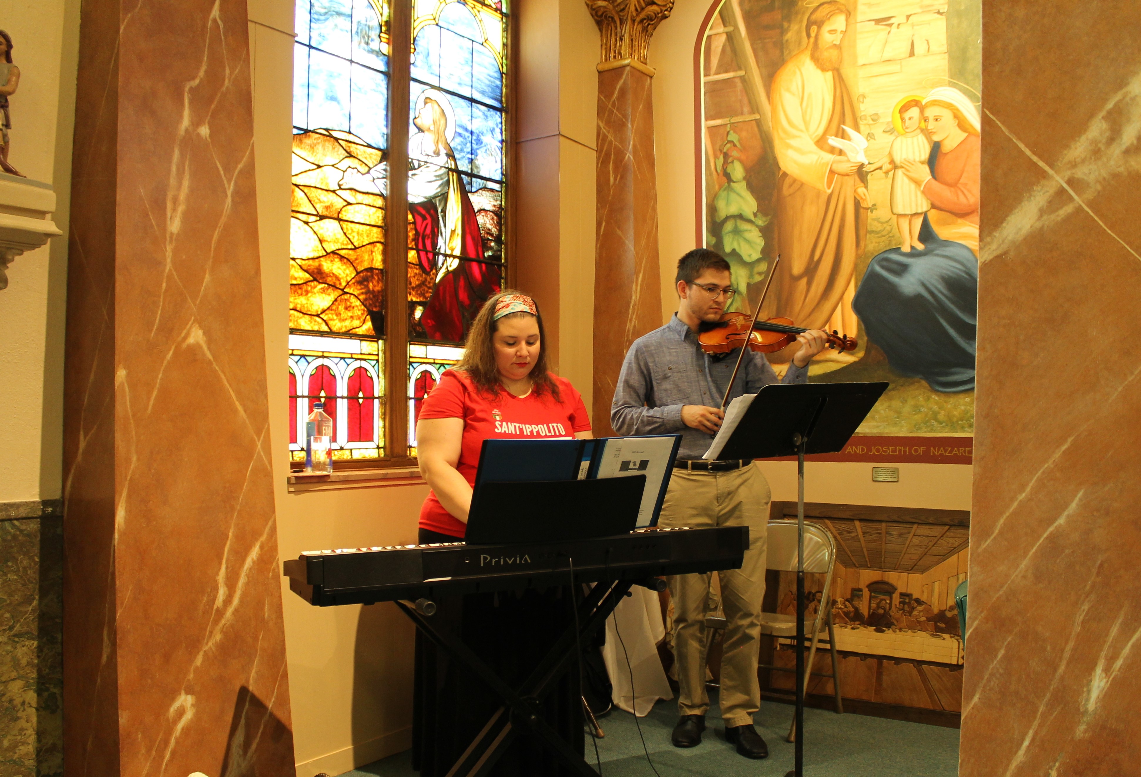 Guinevere Christian was lead vocals and played the piano, while John-Paul Cherniawski played the violin. They both did a wonderful job as the musicians for Mass. Guinevere was instrumental in the planning for Mass inside the church. We appreciate her reverence and willingness to plan the Mass.